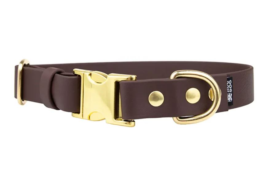 Collare con fibbia ACC Biothane® marrone scuro S,M/25mm finitura ottone