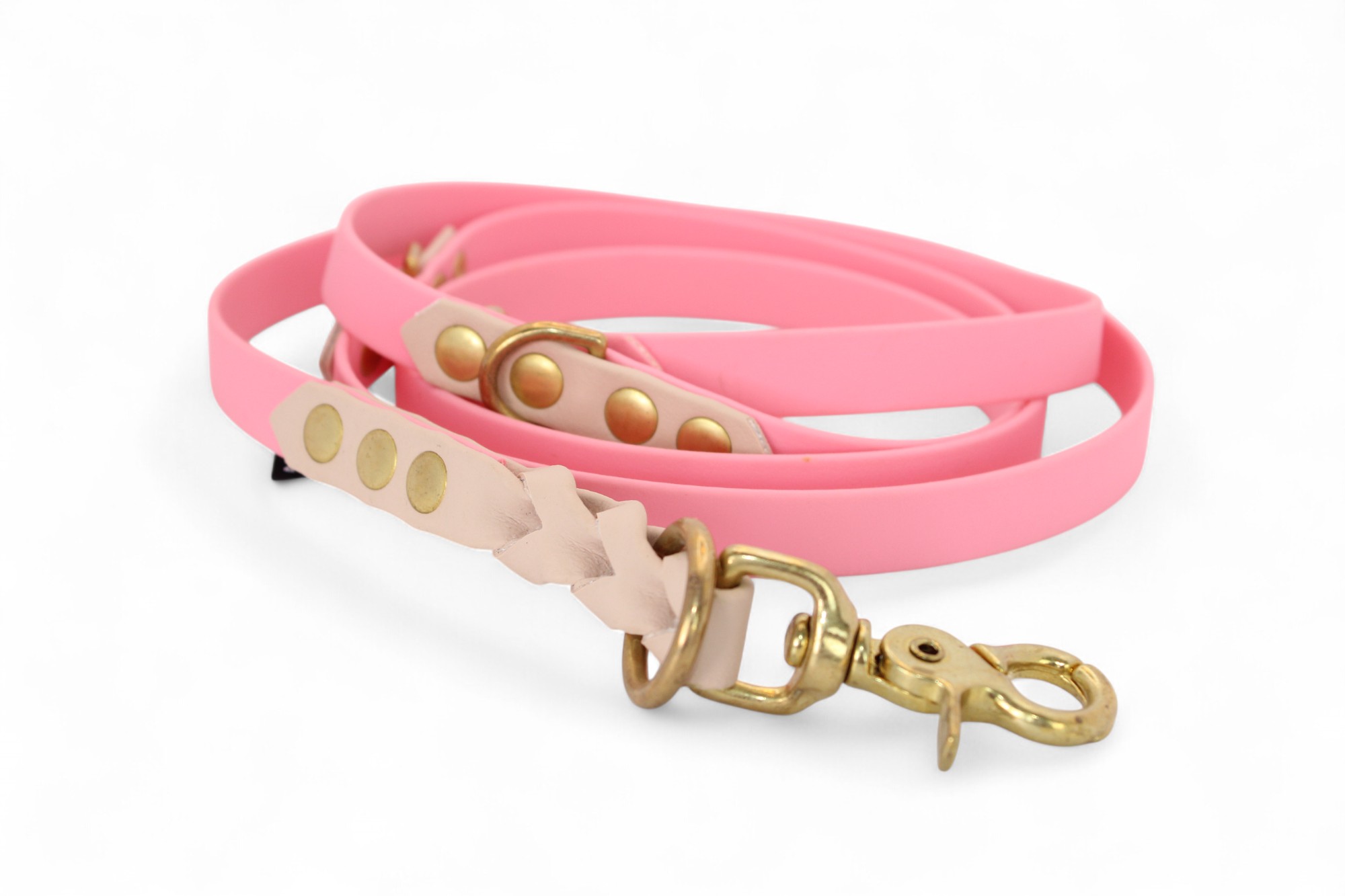 STOCK CLEARANCE: ACC Biothane® Multi-Clip Leash 165cm/16mm dream pink with plaited beige and brass finishings
