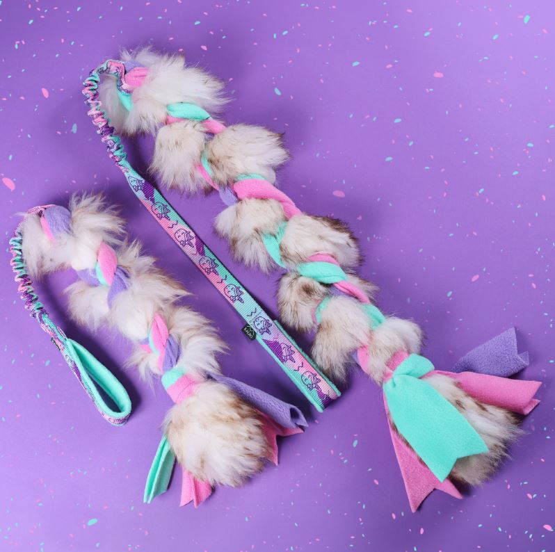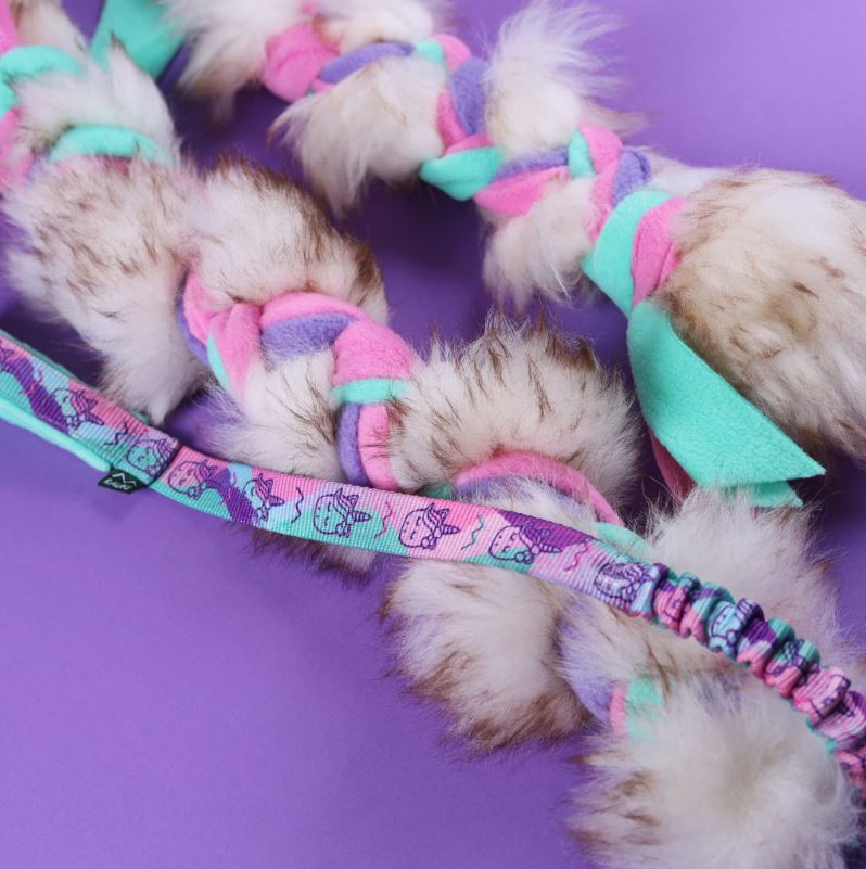 An ideal combination of iconic sheepskin fur and fleece – featuring a highly attractive braided handle with a shock absorber for maximum comfort and fun.