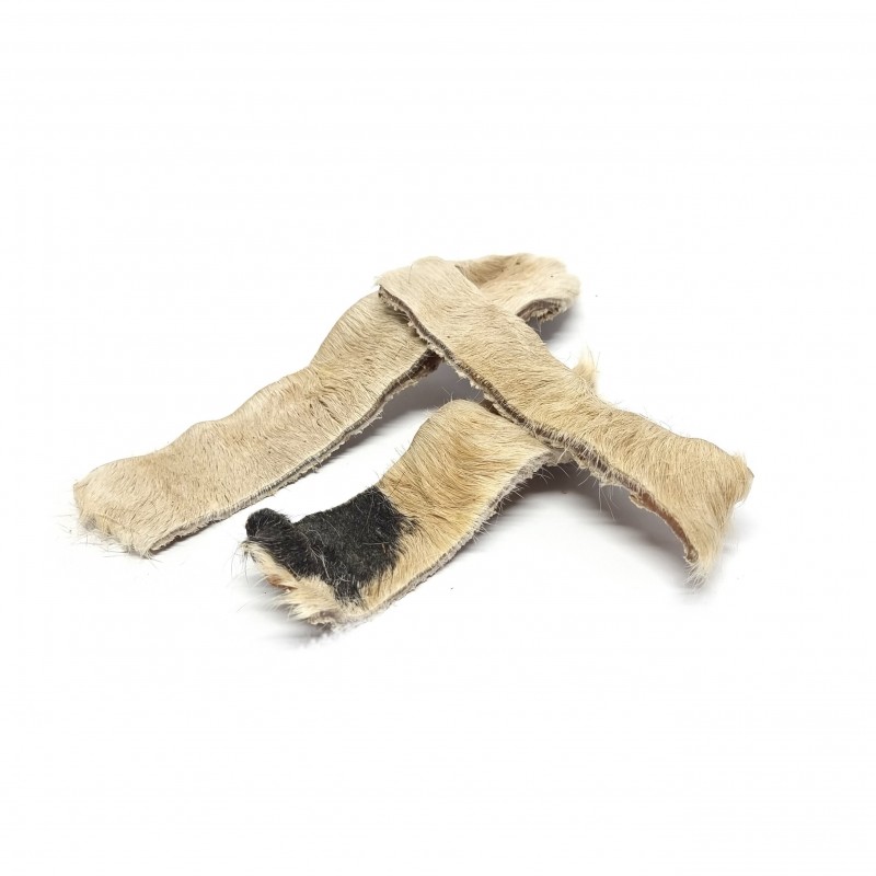 Chews that still contain fur provide valuable natural digestive benefits for dogs. The hair acts as a gentle, natural fibre that helps clean the digestive tract, supporting healthy gut function and improving stool quality. It can also aid in the natural removal of parasites by creating a “brushing” effect inside the intestines. Additionally, chewing fur-on treats satisfies your dog’s instinctive behaviour, offering mental stimulation and mimicking the type of prey-based chewing dogs would naturally engage in. These chews promote dental health as well, helping reduce plaque and tartar build-up in a fully natural way.